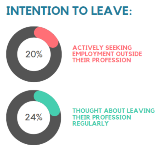 The strongest results were seen in the association between thinking about leaving the profession and feeling unsupported by colleagues and managers (see figure 4).