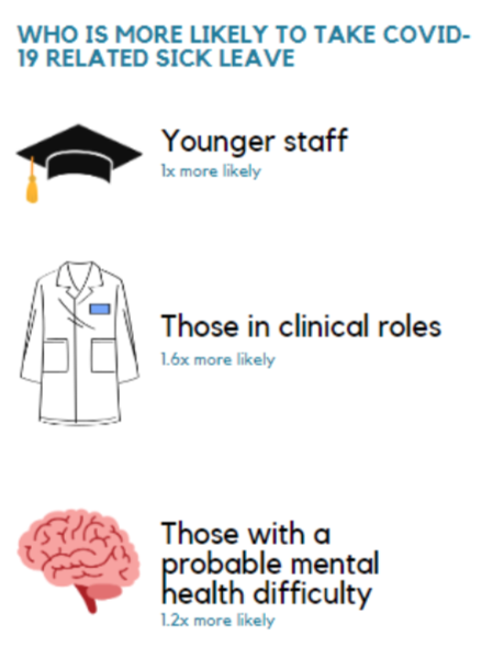 Table 1 below shows the factors associated with taking COVID-19-related sick leave, non-COVID-19-related sick leave and the shared factors for sickness absence and intention to leave the NHS.
