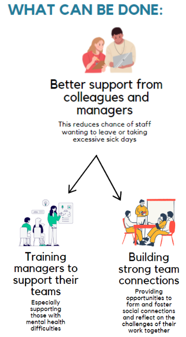 Long waiting lists and cancelled operations in the National Health Service (NHS) have long dominated headlines. Recently, the pressures on the NHS workforce have intensified; 9.6% of NHS staff left the service in the year to September 2020, compared to 12.5% in the year to September 2022 (1). The COVID-19 pandemic along with the ongoing difficult economic climate, namely the compounding effects of austerity and subsequent funding cuts to the health and social care sector, continues to put significant strain on staff and mental health services. In addition to staff leaving, sickness absence rates are at an all-time high. March 2022, in particular, saw a record high sickness absence rate of 6.0%; this is higher than during the peak pandemic times of March-June 2020 (4.0%) and January 2021 (5.7%) (2) and a 29% rise from the 2019 rate (3).